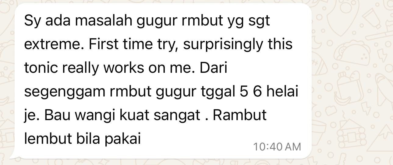 Habibiy Hair Tonic ni dah bantu saya dan customer saya hilangkan rambut gugur