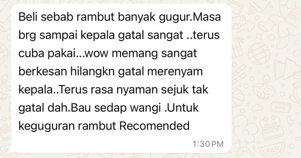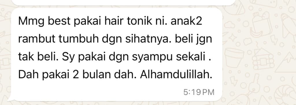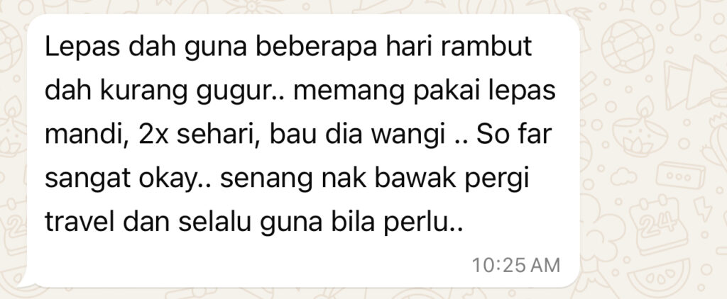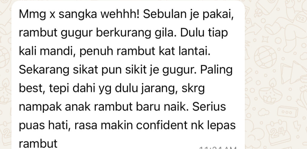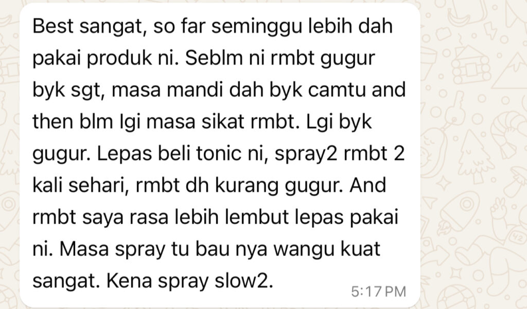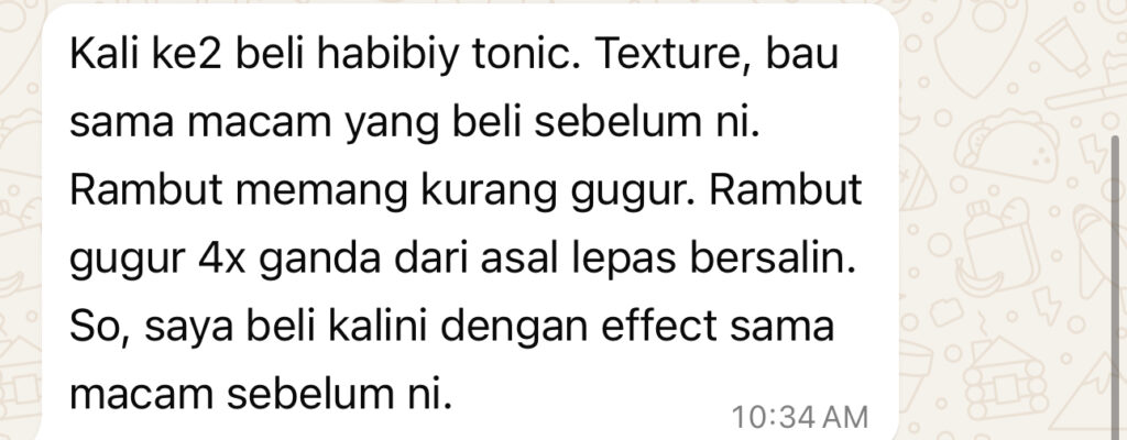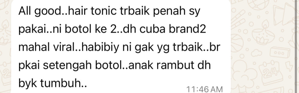 Habibiy Hair Tonic ni dah bantu saya dan customer saya hilangkan rambut gugur